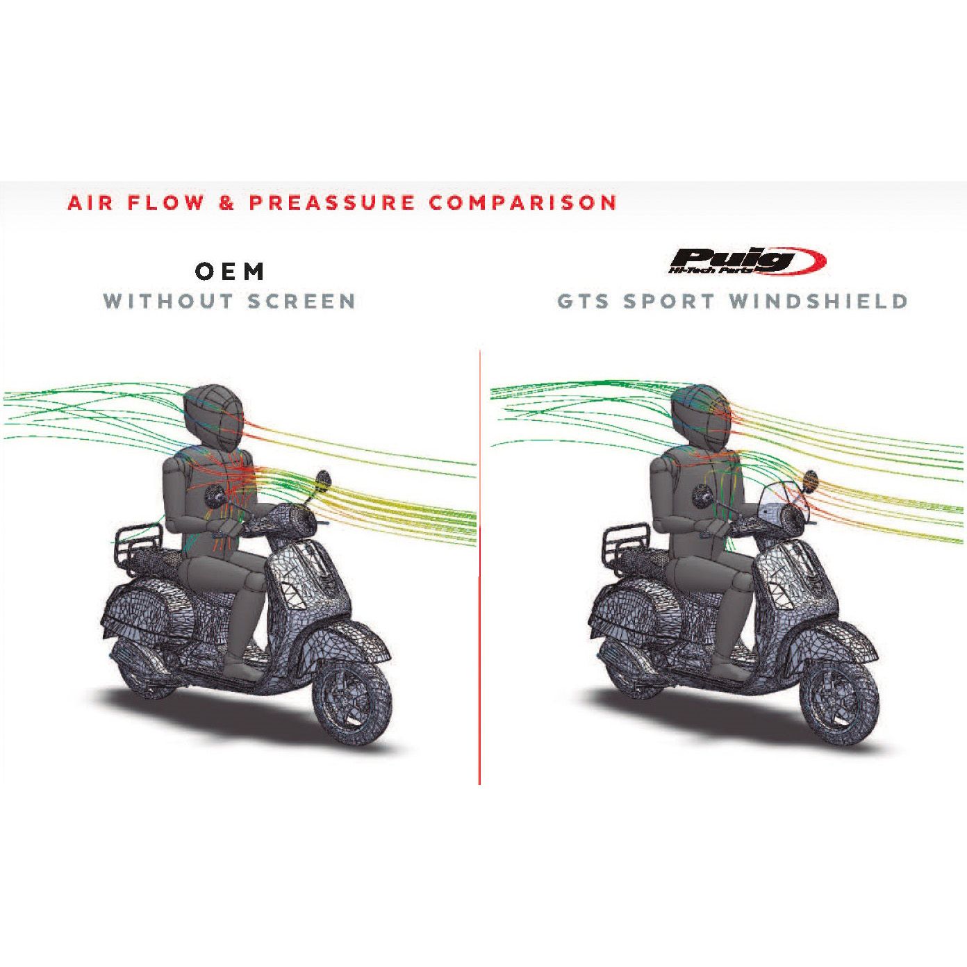 Entwickelt in Barcelona, unter Verwendung der innovativsten Technologie und aus hochwertigem CN-Acryl-Material hergestellt, wird die neue Puig GTS Sport Windschutzscheibe zu Ihrem besten Verbündeten gegen schlechtes Wetter und böigen Wind, sowie stark und widerstandsfähig gegen mögliche Stöße oder Spritzer während der Fahrt. Die ästhetische Linie der Vespa wird nicht beeinträchtigt, im Gegenteil, sie wertet Ihre Vespa auf, indem sie Ihr einen sportlicheren Charakter verleiht. Die Montage der neuen Windschutzscheibe GTS Sport ist sehr einfach und in 20 Minuten und ohne besondere mechanische Kenntnisse zu bewerkstelligen. Sie wird an der Halterung der Rückspiegel befestigt.