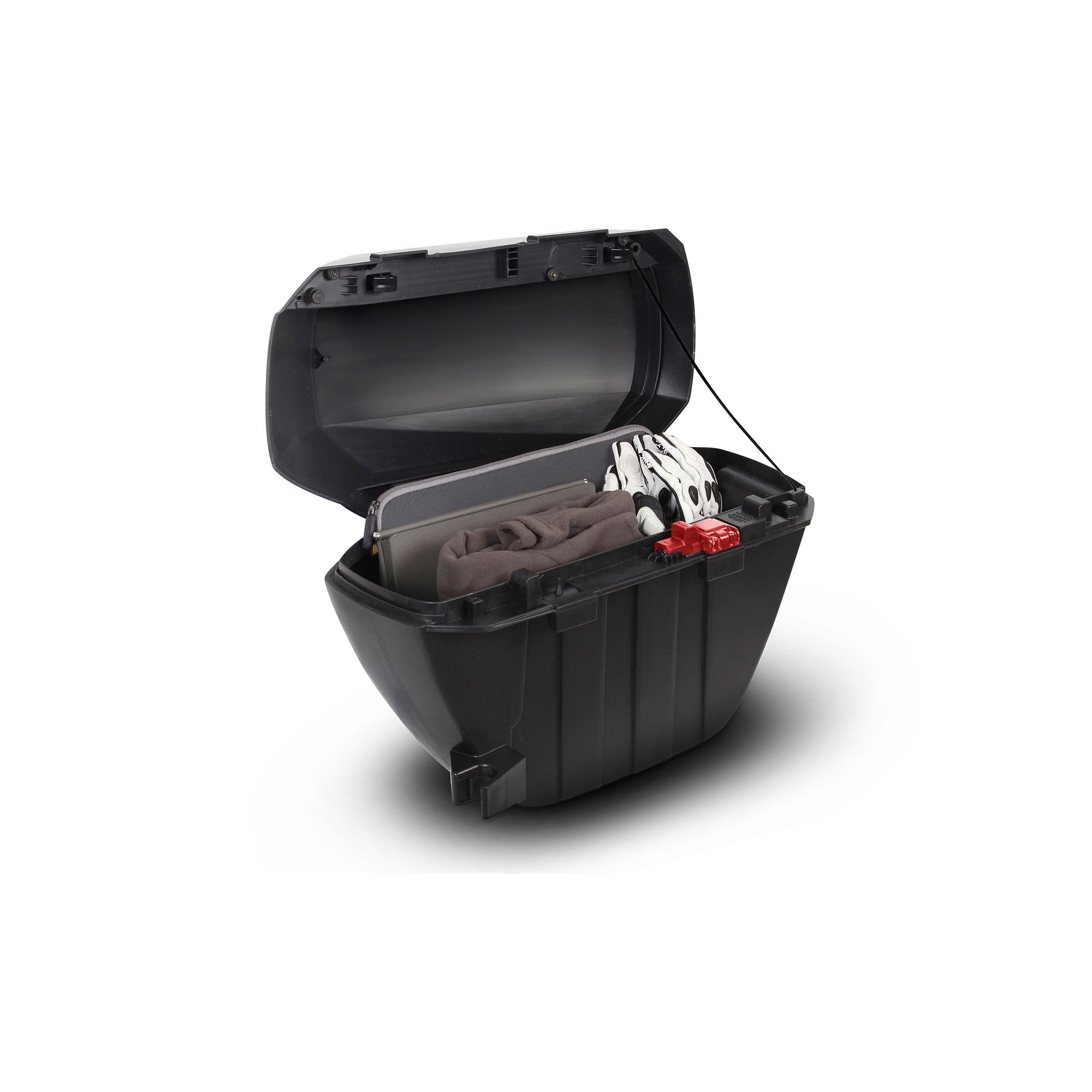 Mit einer einzigen Umdrehung des Schlüssels hat er eine doppelte Schließfunktion! Er blockiert den Zugang zum Inneren des Koffers und sichert ihn am Motorrad. Enthält 2 Schlüssel und einen zusätzlichen Schließzylinder, mit dem man dann mit einem Schlüssel drei Koffer öffnen kann (Seiten- und Topcase SH26,SH47).