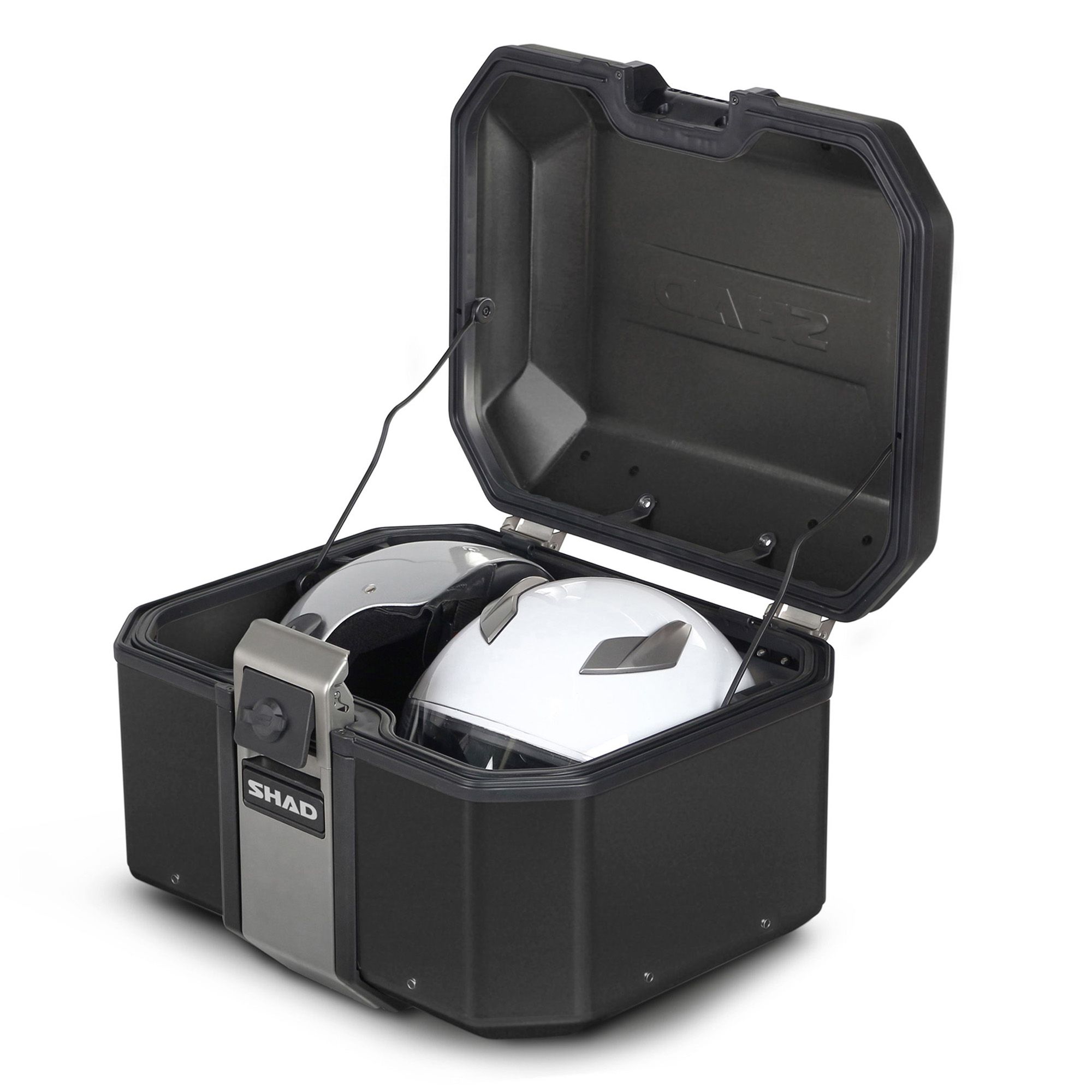 Das Shad TR48 Topcase wurde zu 100% in Barcelona entworfen, entwickelt und hergestellt und bietet Platz für einen Integralhelm oder 2 Jethelme. Hergestellt aus gehärteter Aluminiumlegierung, eine stärkere und leichtere Art von Aluminium, die einen reduzierten Querschnitt von 1,2 mm ermöglicht, um ein minimales Gewicht mit maximaler Beständigkeit zu erhalten. Beinhaltet das "TERRA Lock System".