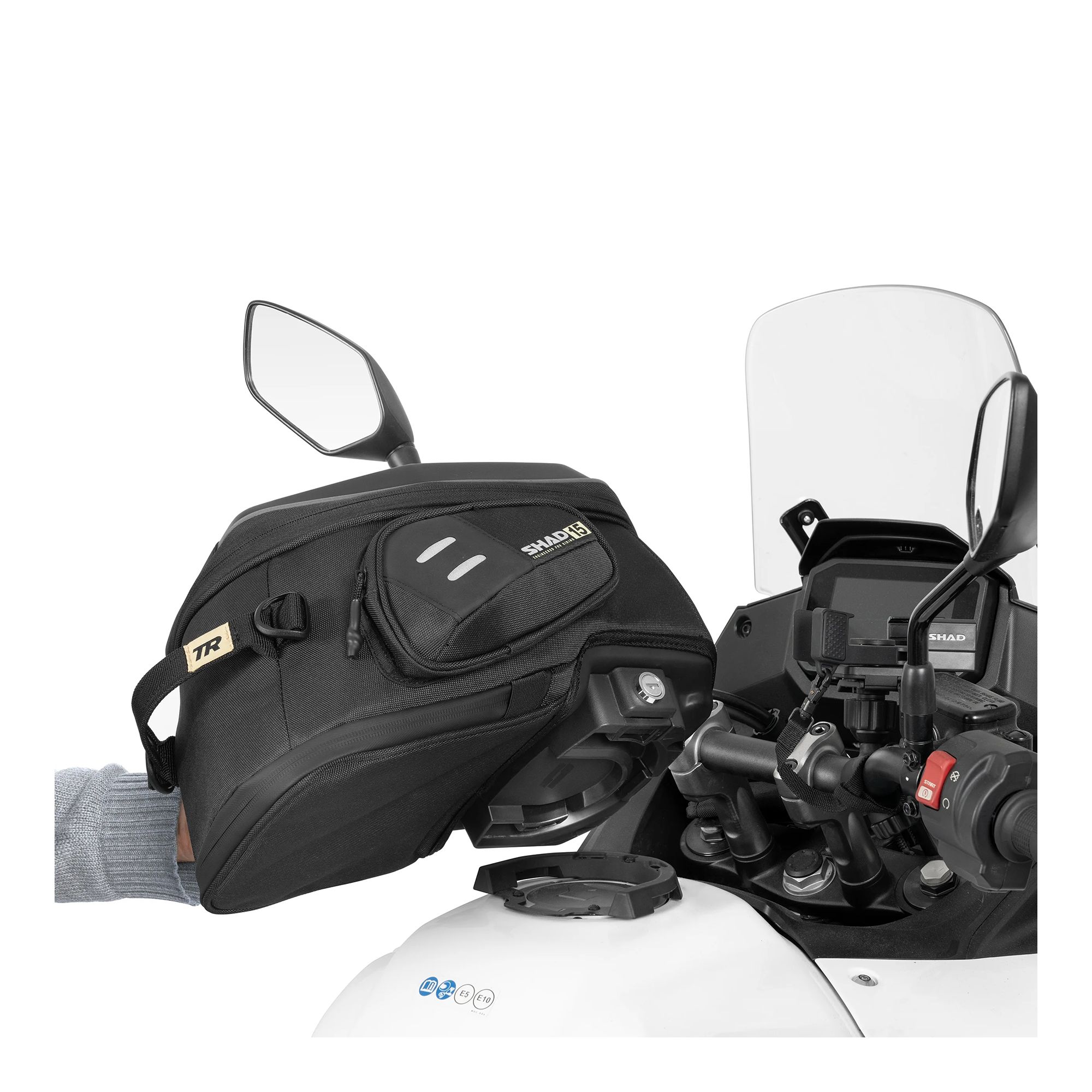 Das SHAD Click System H010CS ist die Weiterentwicklung des Pin System zur Tankrucksack-Befestigung. Es zeichnet sich durch seine Benutzerfreundlichkeit und die Integration an das Motorrad aus, sowie durch den Druckknopf, mit dem man den Tankrucksack durch einfaches Drücken schnell entriegeln kann.
