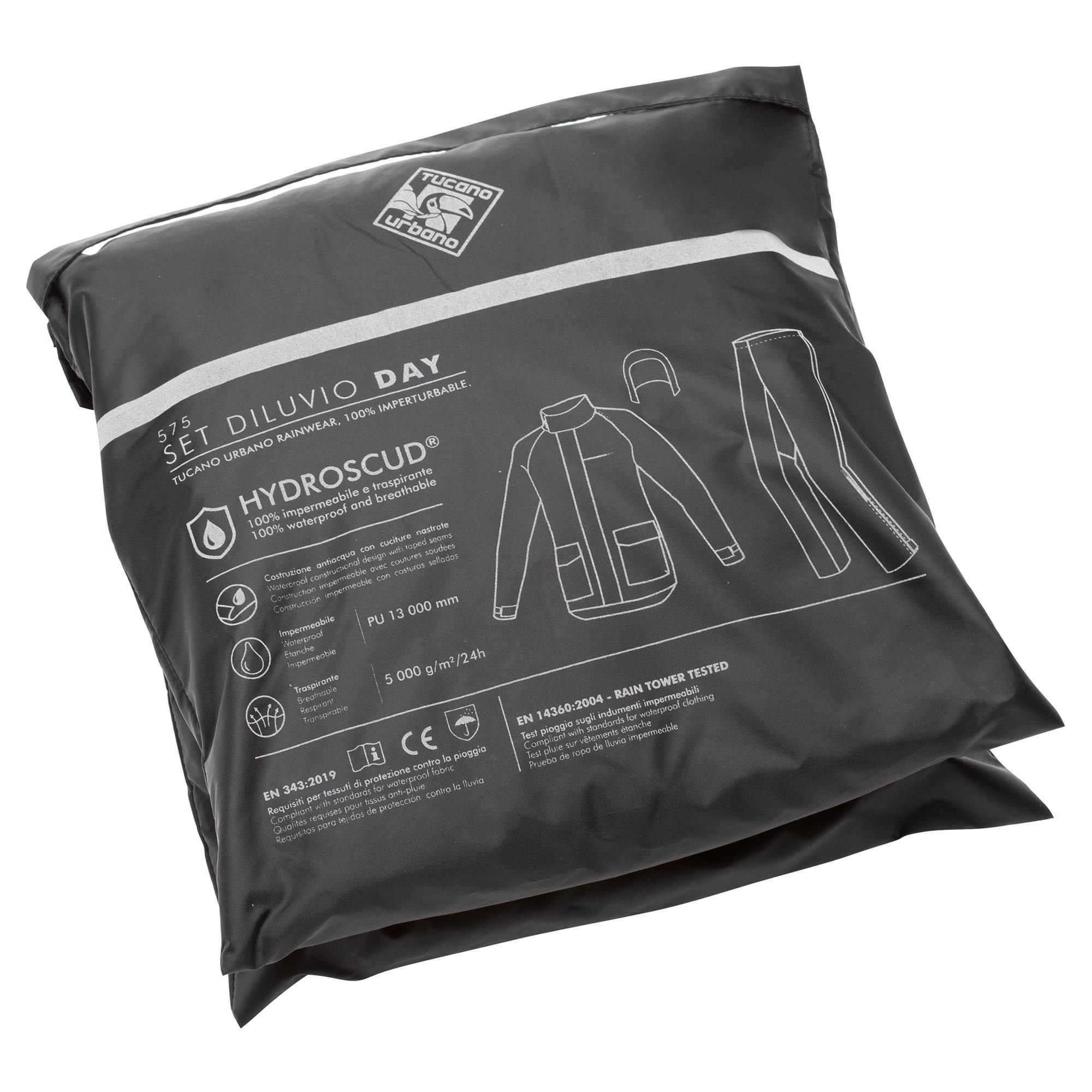 Das Tucano Regenbekleidungsset Diluvio Day Schwarz besteht aus einer Regenhose und einer Regenjacke.