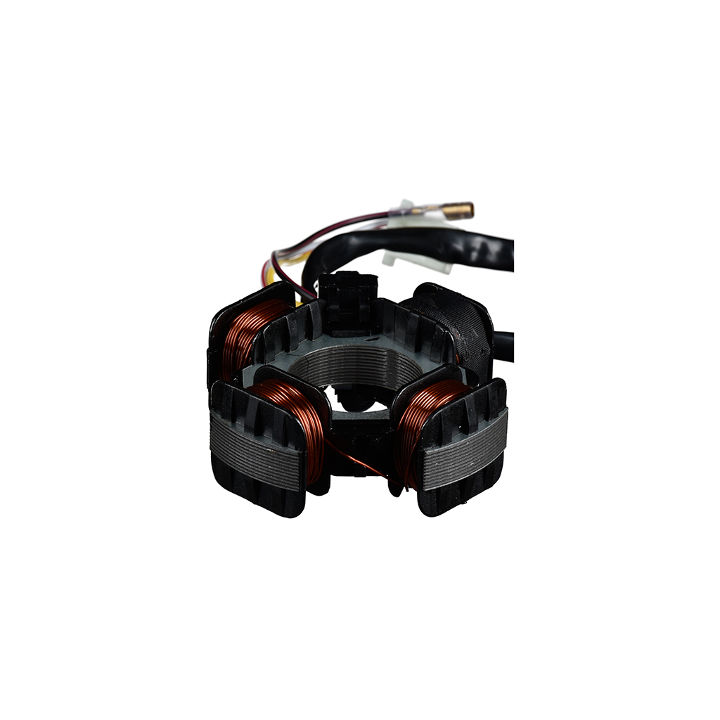 Zündankerplatte / Lichtmaschine / Stator für Motorroller mit Morini Motoren der neueren Generation mit 84 mm Zündplatte. Das Bauteil besteht aus Stator und Kabelsatz. Komplett einbaufertig.