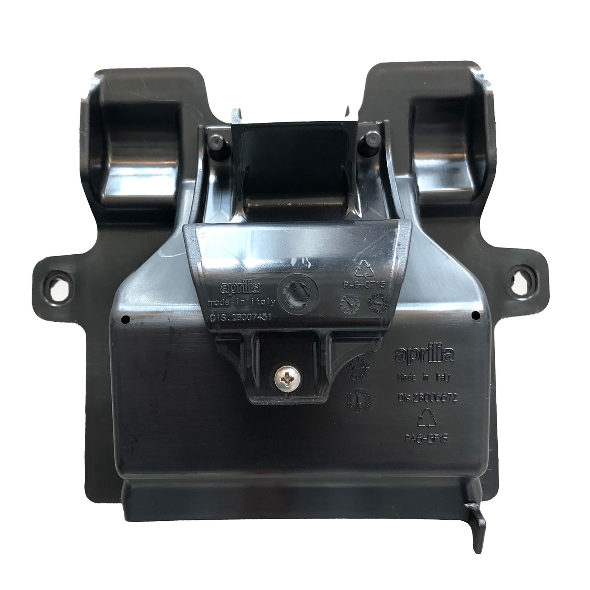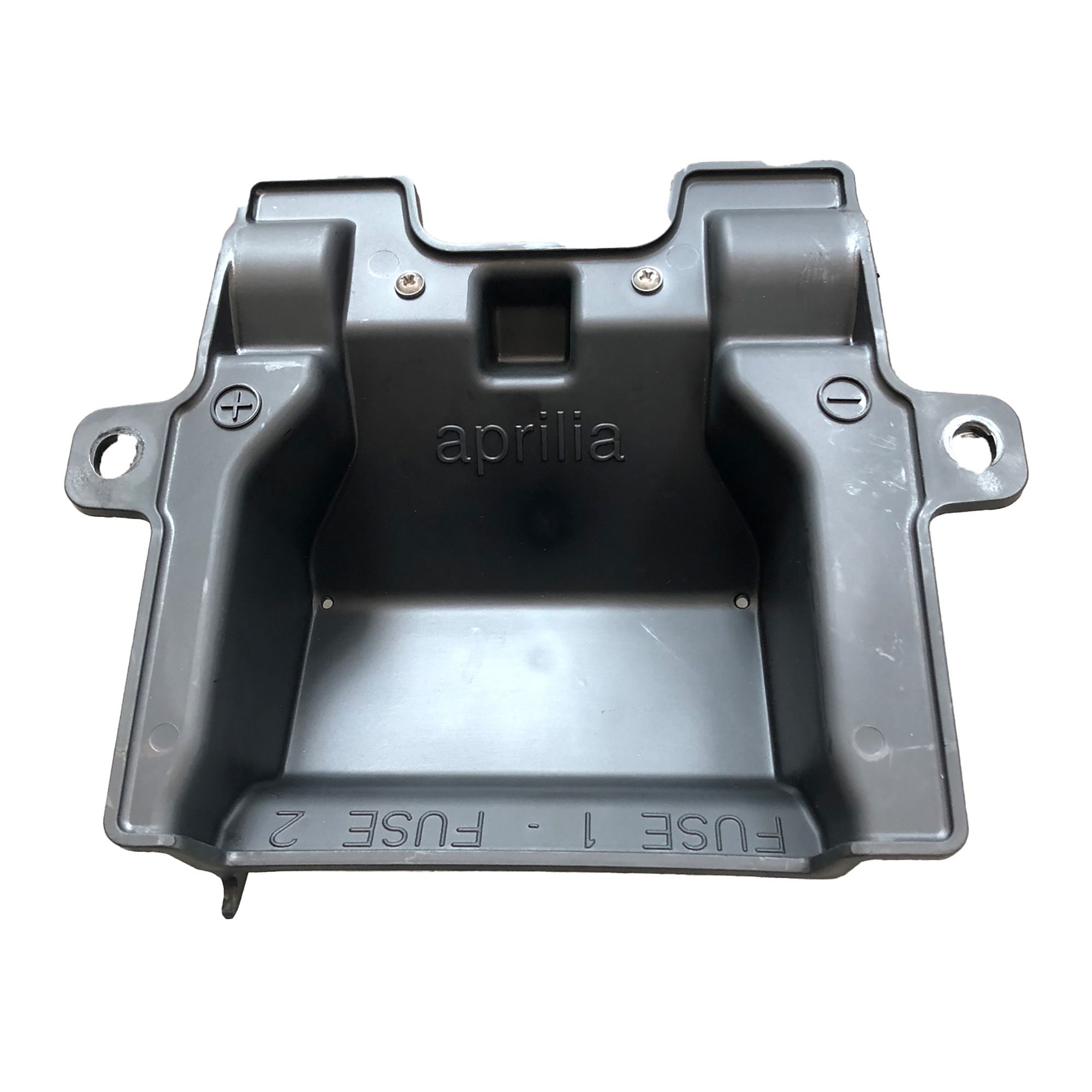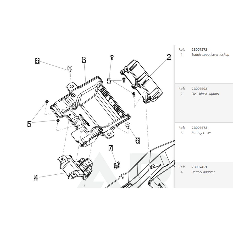 Um eine YTZ10S- Lithium Batterie bei der Aprilia RS 660 einzusetzen, muss der Batterieadapter (4) entfernt werden. Dazu müssen zwei selbstschneidende Schrauben auf der Außenseite und eine selbstschneidende Schraube auf der Innenseite der Batterieabdeckung (3) entfernt werden.