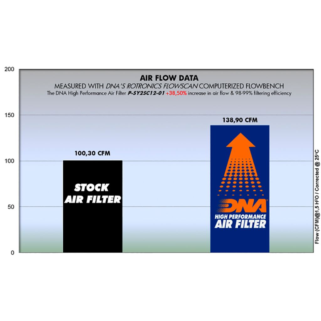 OEM Air Filter Air Flow: 100.30 CFMDNA Air Filter Air Flow: 138.90 CFM