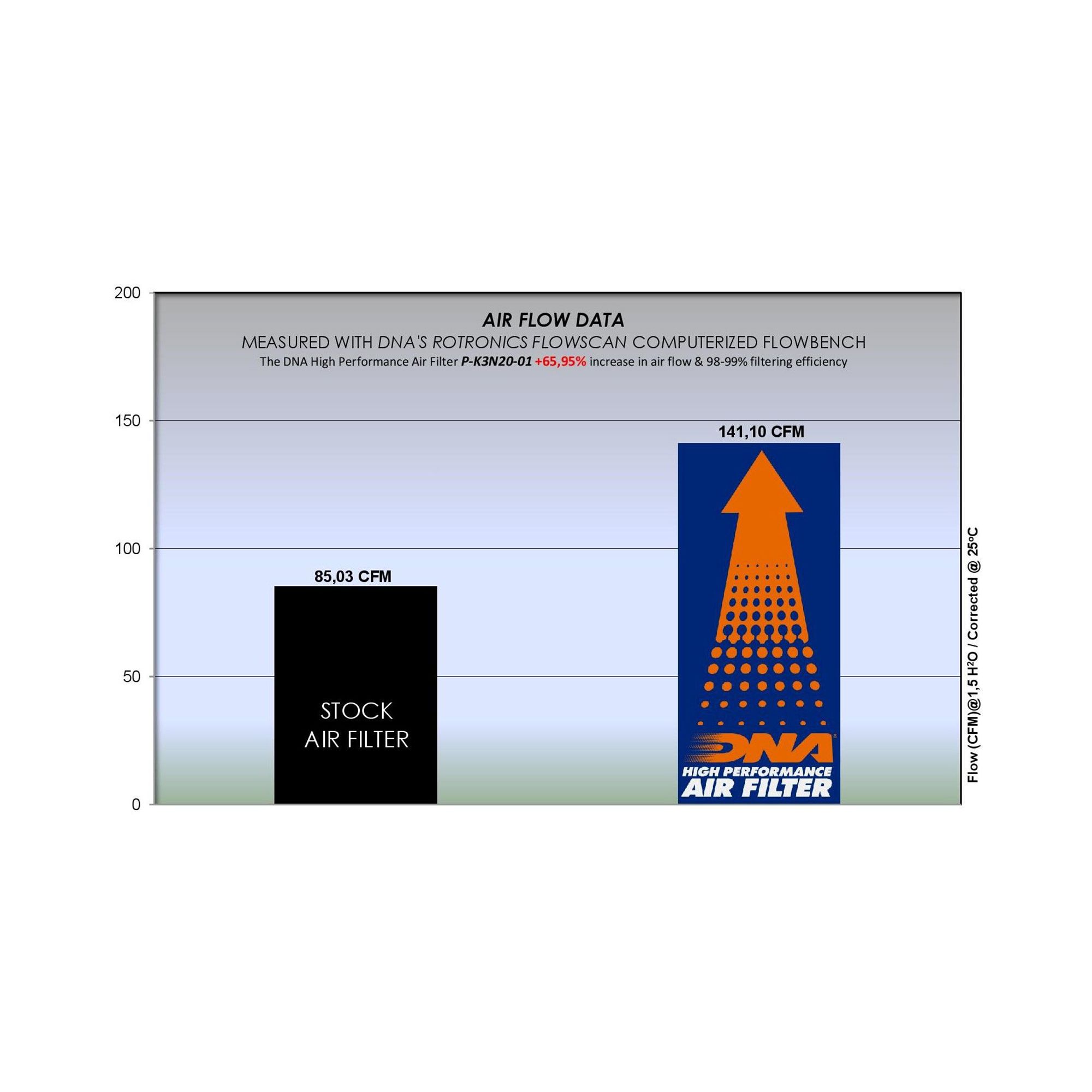 OEM Air Filter Air Flow: 85.03 CFMDNA Air Filter Air Flow: 141.10 CFM