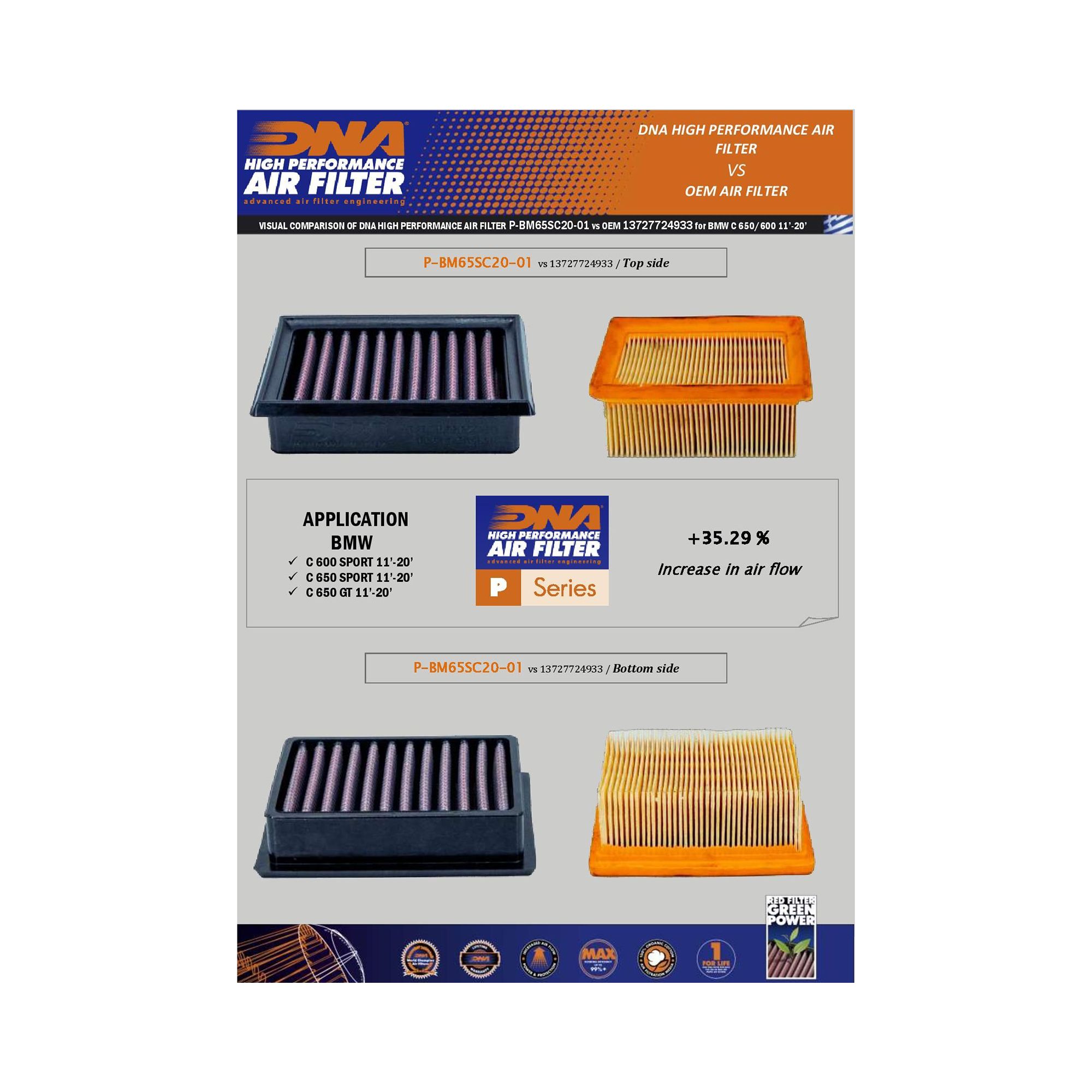 OEM Air Filter Air Flow: 91.61 CFMDNA Air Filter Air Flow: 179.90 CFM
