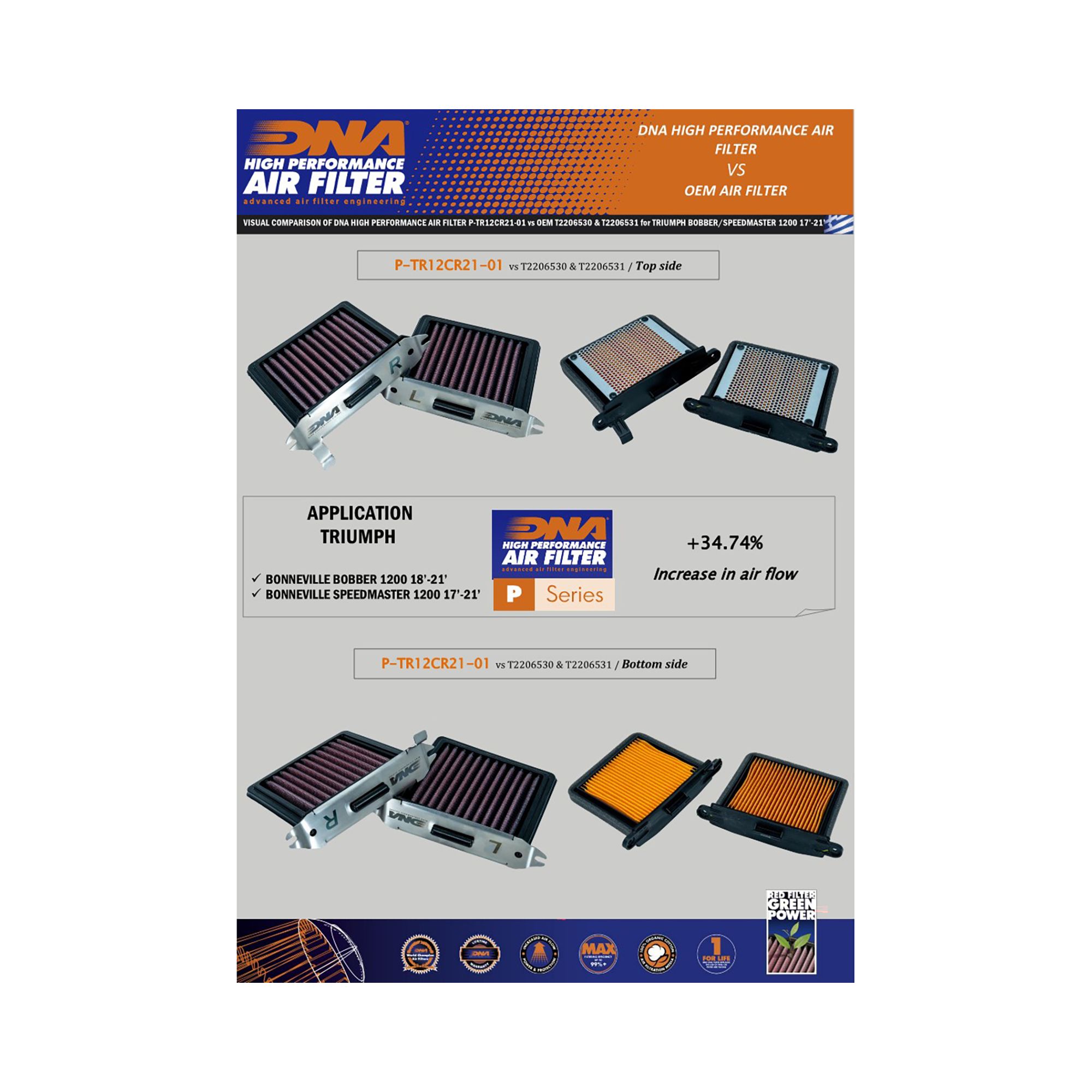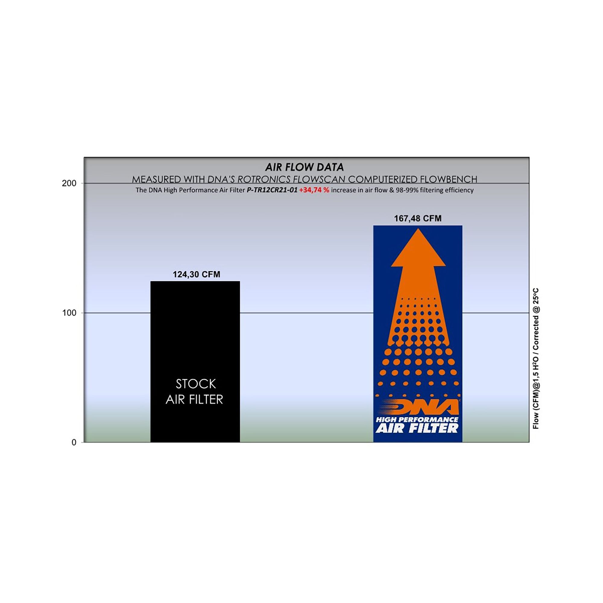 OEM Air Filter Air Flow: 167.70 CFMDNA Air Filter Air Flow: 210.80 CFM