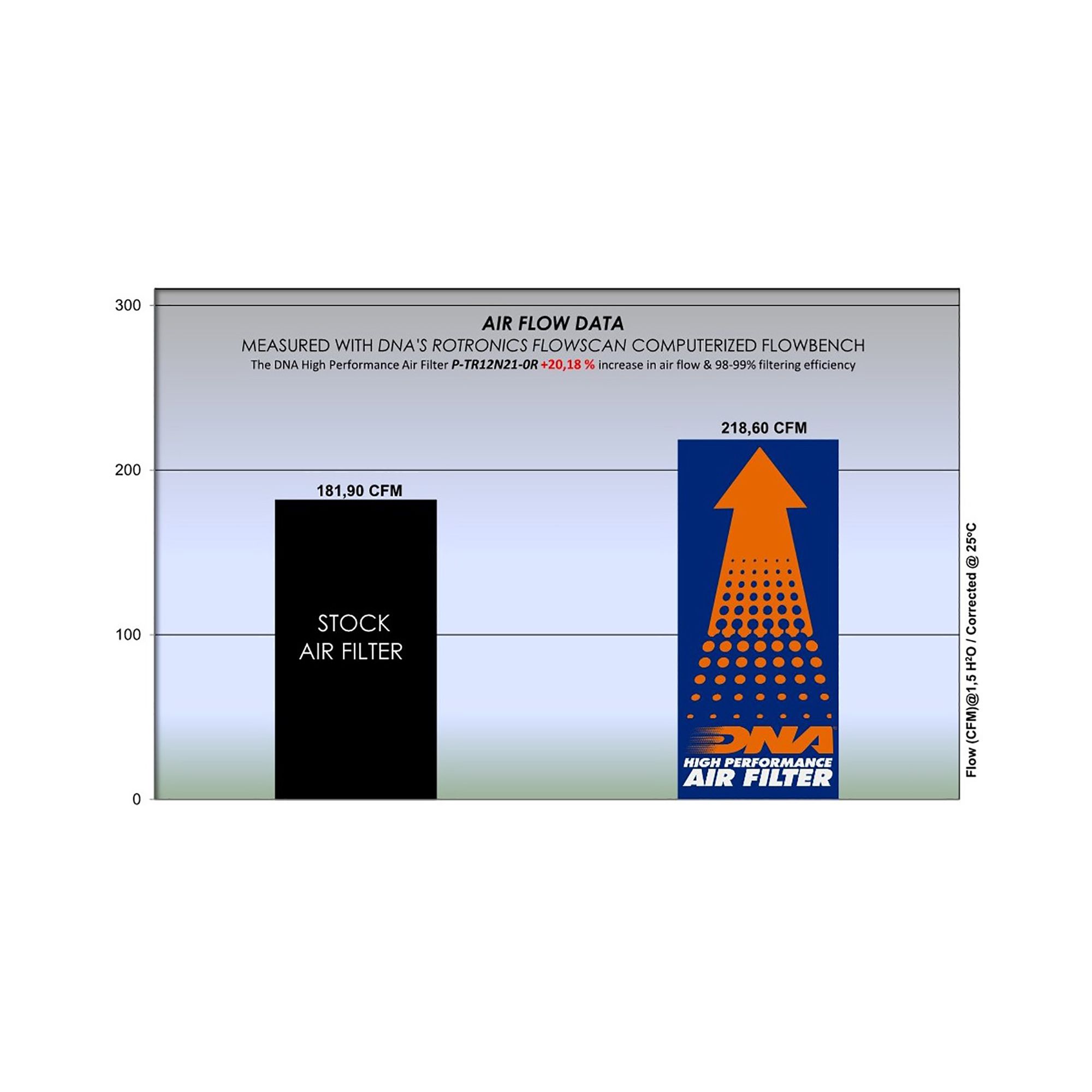 OEM Air Filter Air Flow: 181.90 CFMDNA Air Filter Air Flow: 218.60 CFM