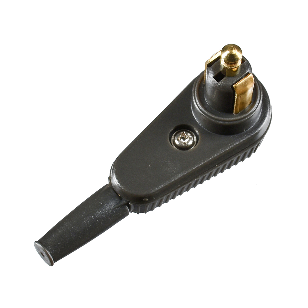 Durch den abgewinkelten Kabelabgang steht das Kabel im Fahrbetrieb nicht so weit ab wie bei geraden Steckern.