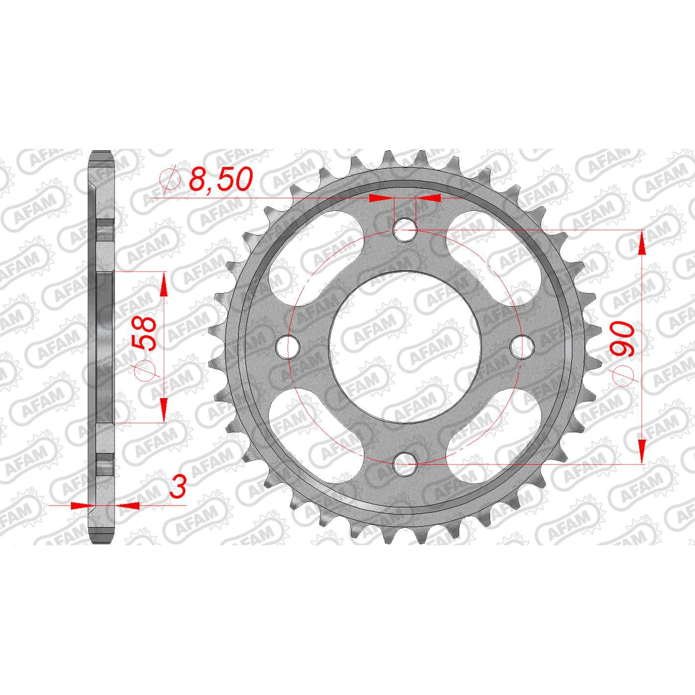 Eigenschaften "AFAM Kettenrad STAHL #420 36 Zähne"