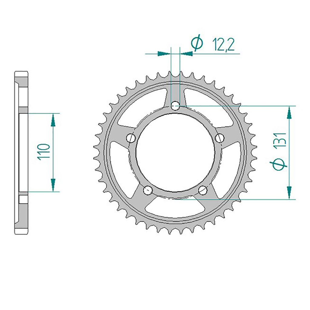 Eigenschaften "AFAM Kettenrad STAHL #525 schwarz 43 Zähne"