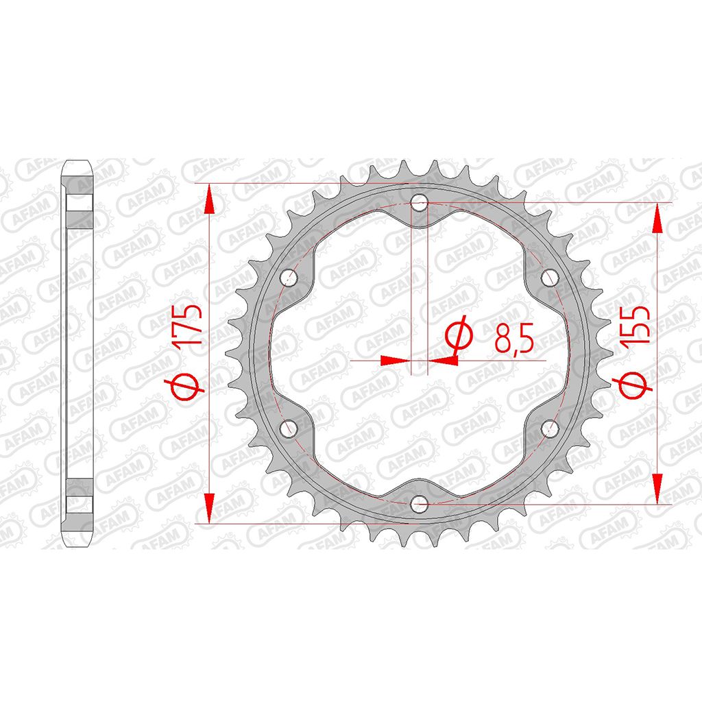 Eigenschaften "AFAM Kettenrad 29050-38 STAHL #525 38 Zähne"