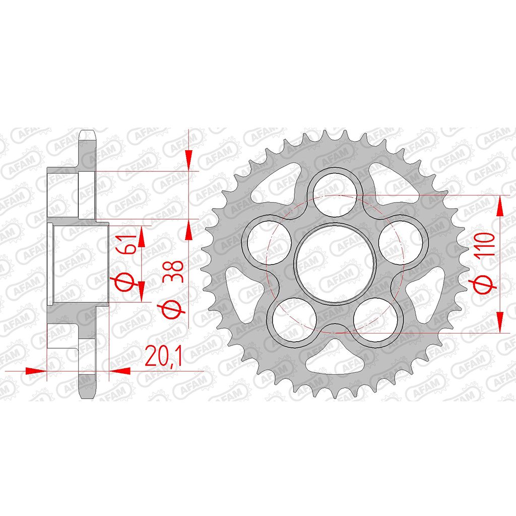 Eigenschaften "AFAM Kettenrad STAHL #520 f. MV 41 Zähne"
