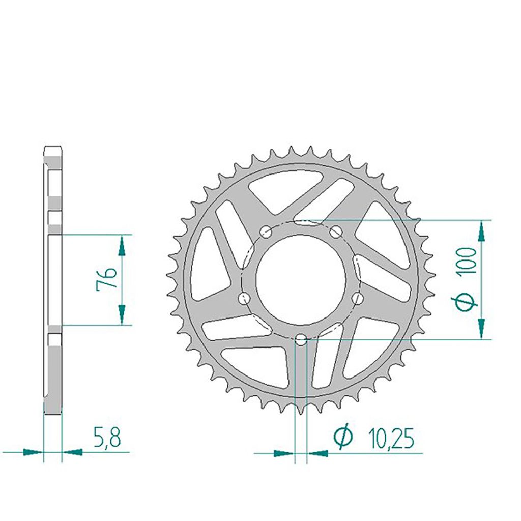 Dieses Kettenrad passt auf alle Räder, die die Anbaumaße 5 Loch,