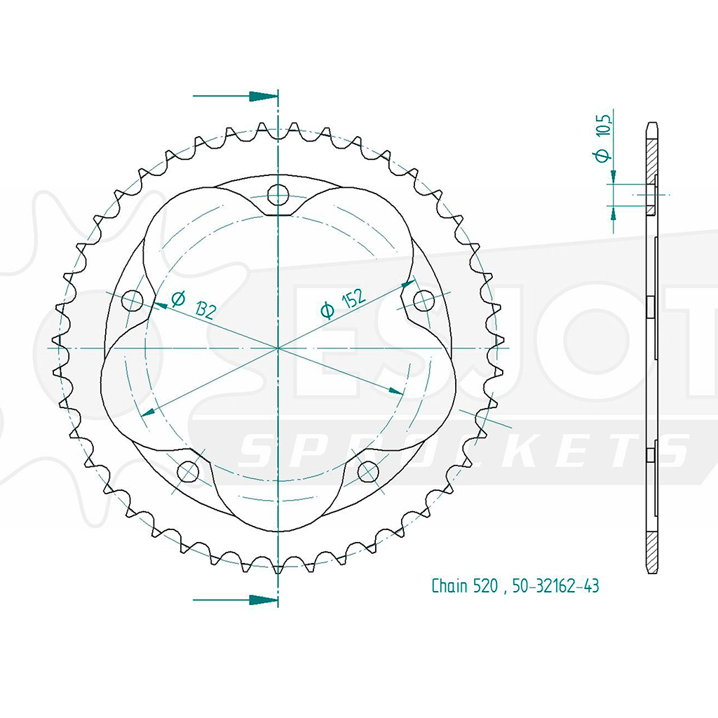 Produktinformationen "Esjot Kettenrad STAHL #520 43 Zähne"