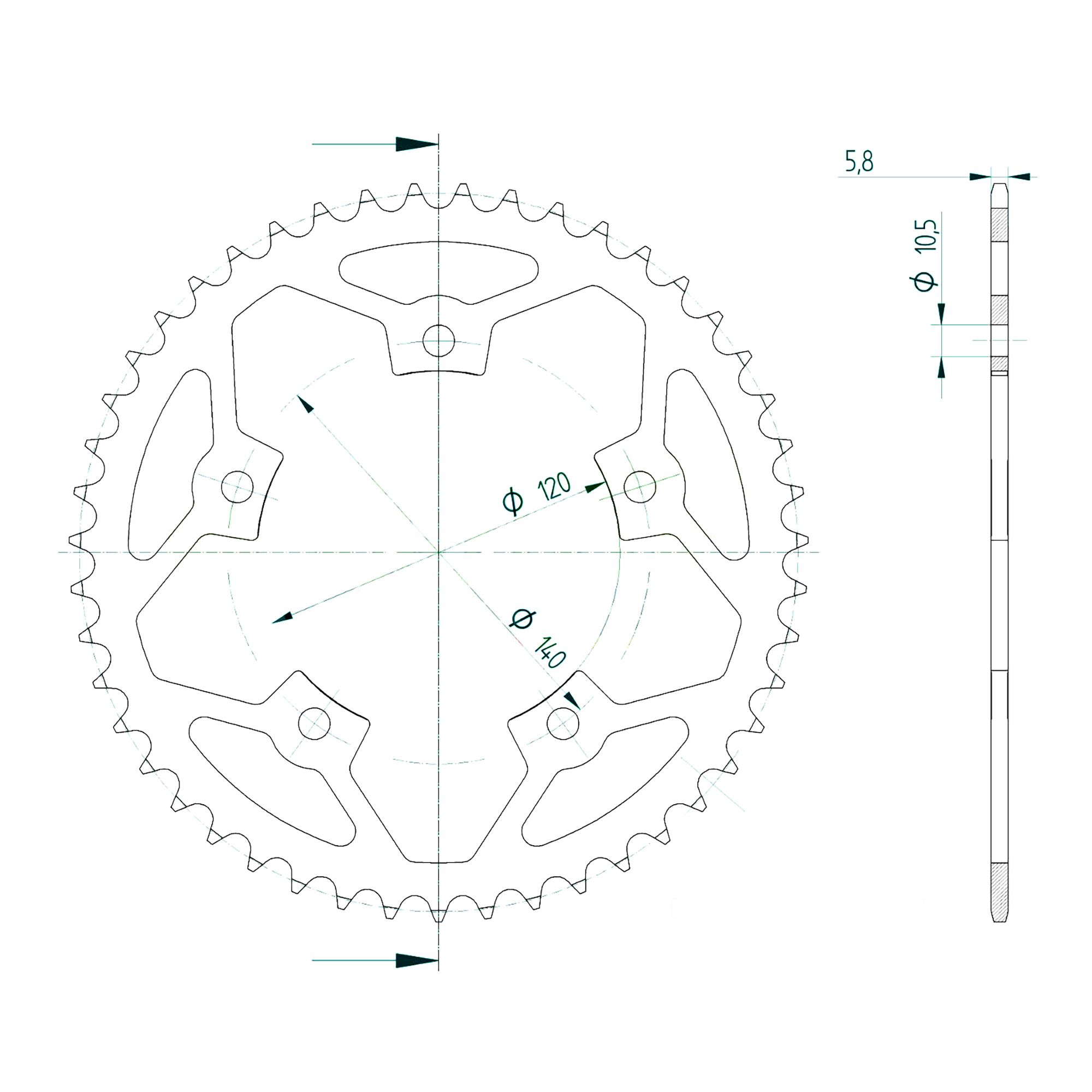 Eigenschaften "Esjot Kettenrad STAHL #520 45 Zähne"