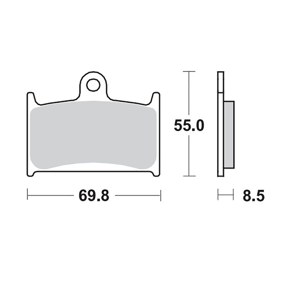 Gesinterter Bremsbelag für die Vorderachse.