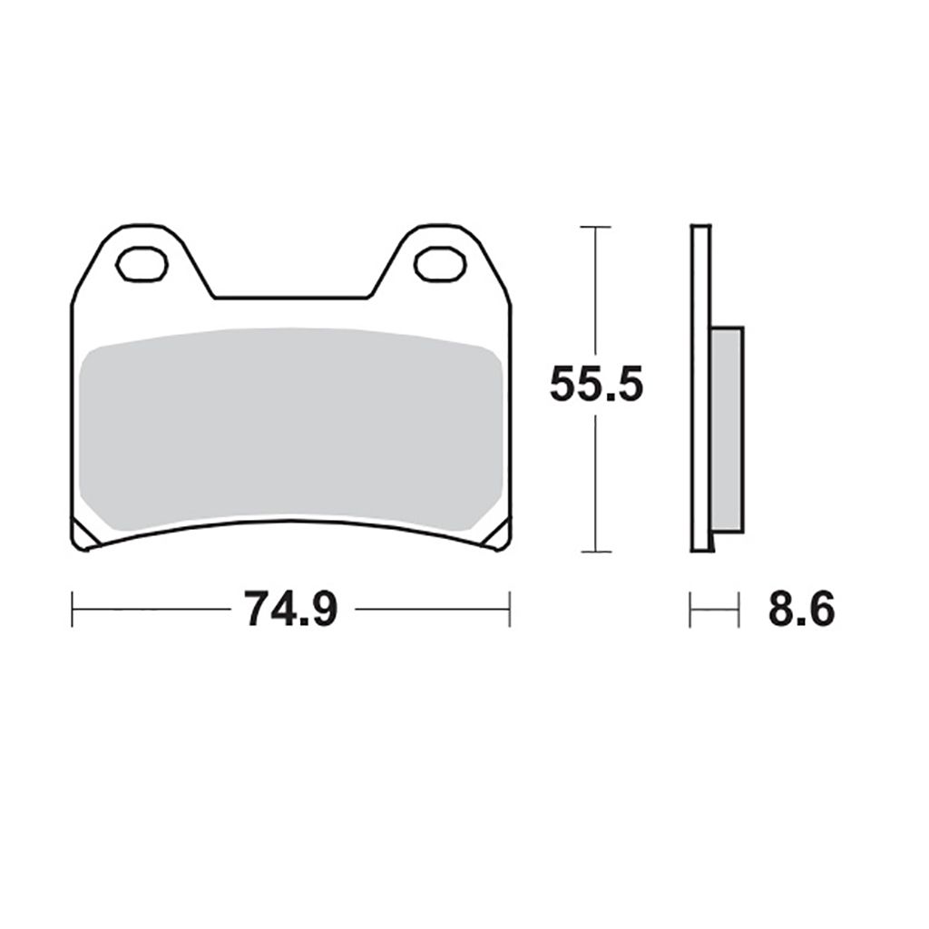 Gesinterter Bremsbelag für die Vorderachse.