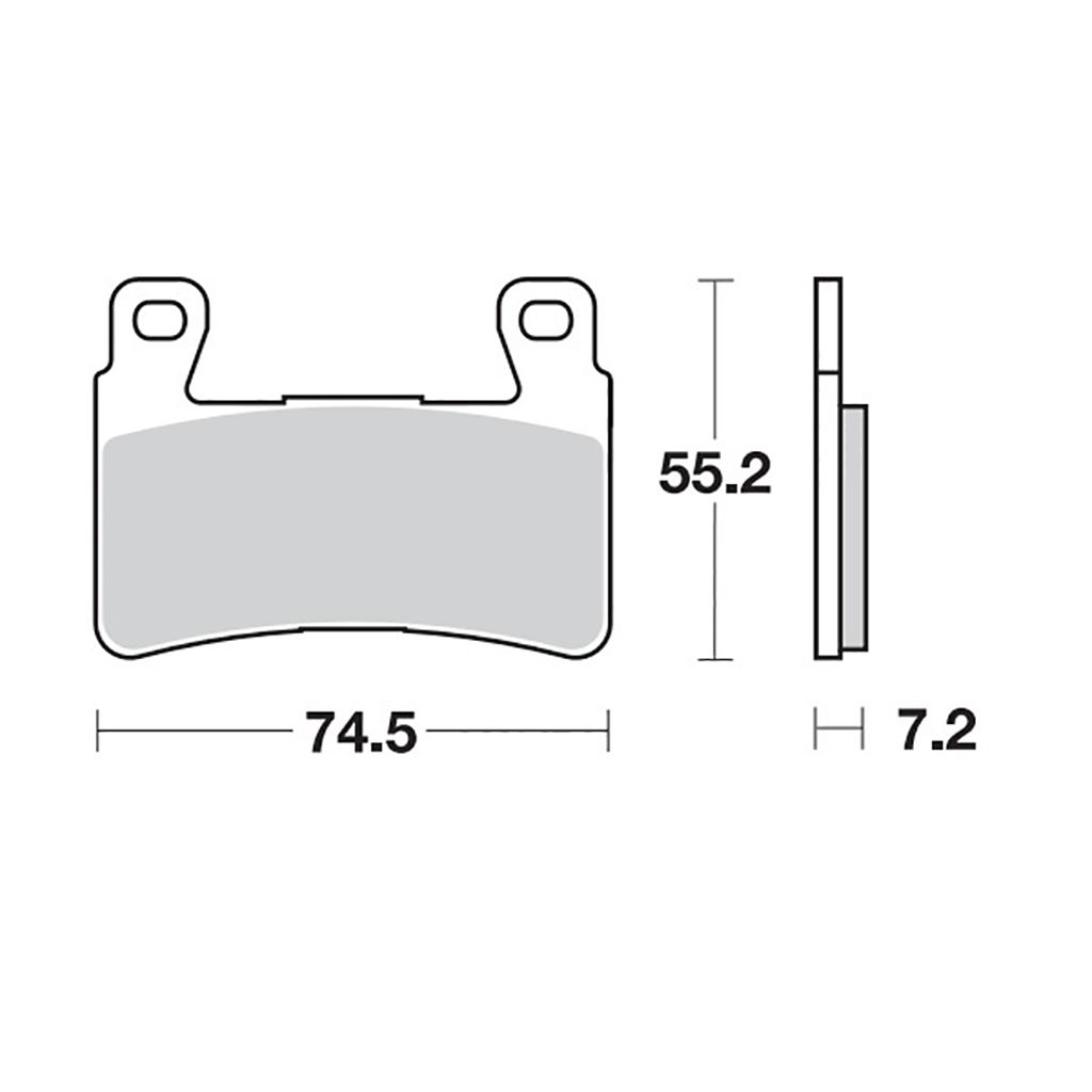 Gesinterter Bremsbelag für die Vorderachse.