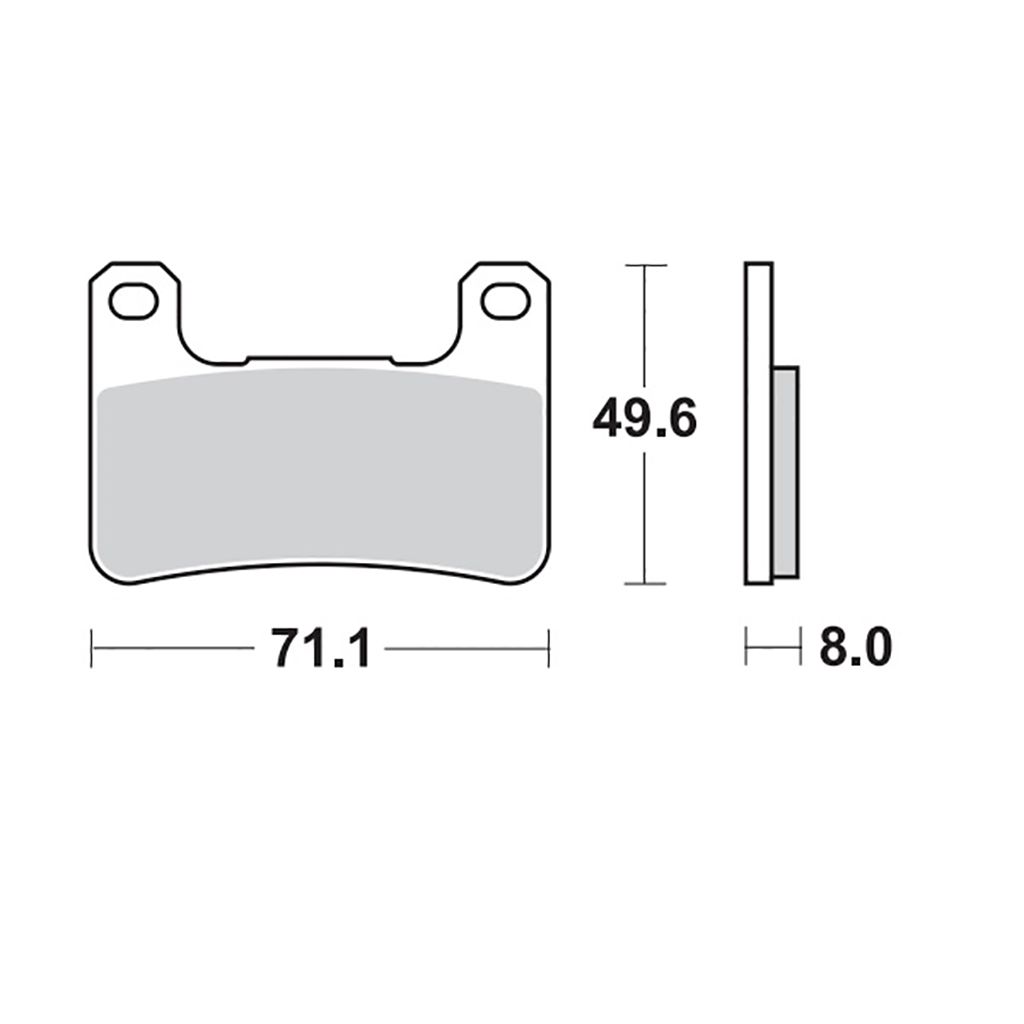 Gesinterter Bremsbelag für die Vorderachse.