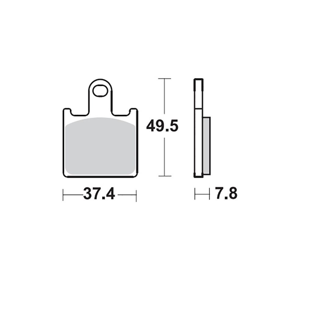 Gesinterter Bremsbelag für die Vorderachse.