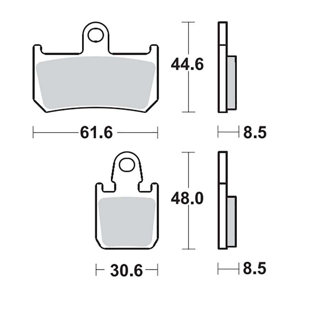 Gesinterter Bremsbelag für die Vorderachse.