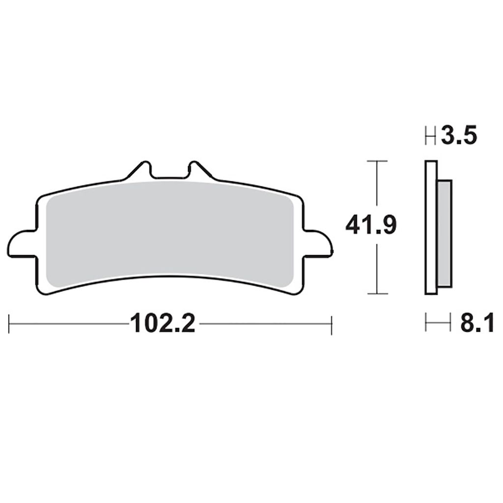 Gesinterter Bremsbelag für die Vorderachse.