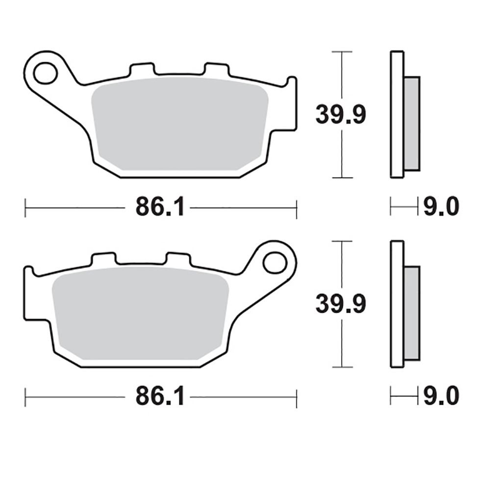 Gesinterter Bremsbelag für die Hinterachse.