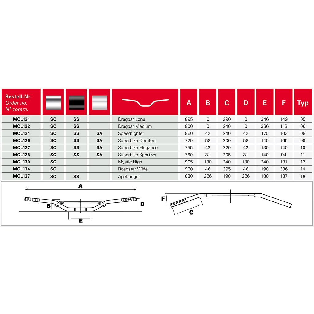 Eigenschaften "TRW Stahllenker Apehanger Ø 22 mm schwarz"