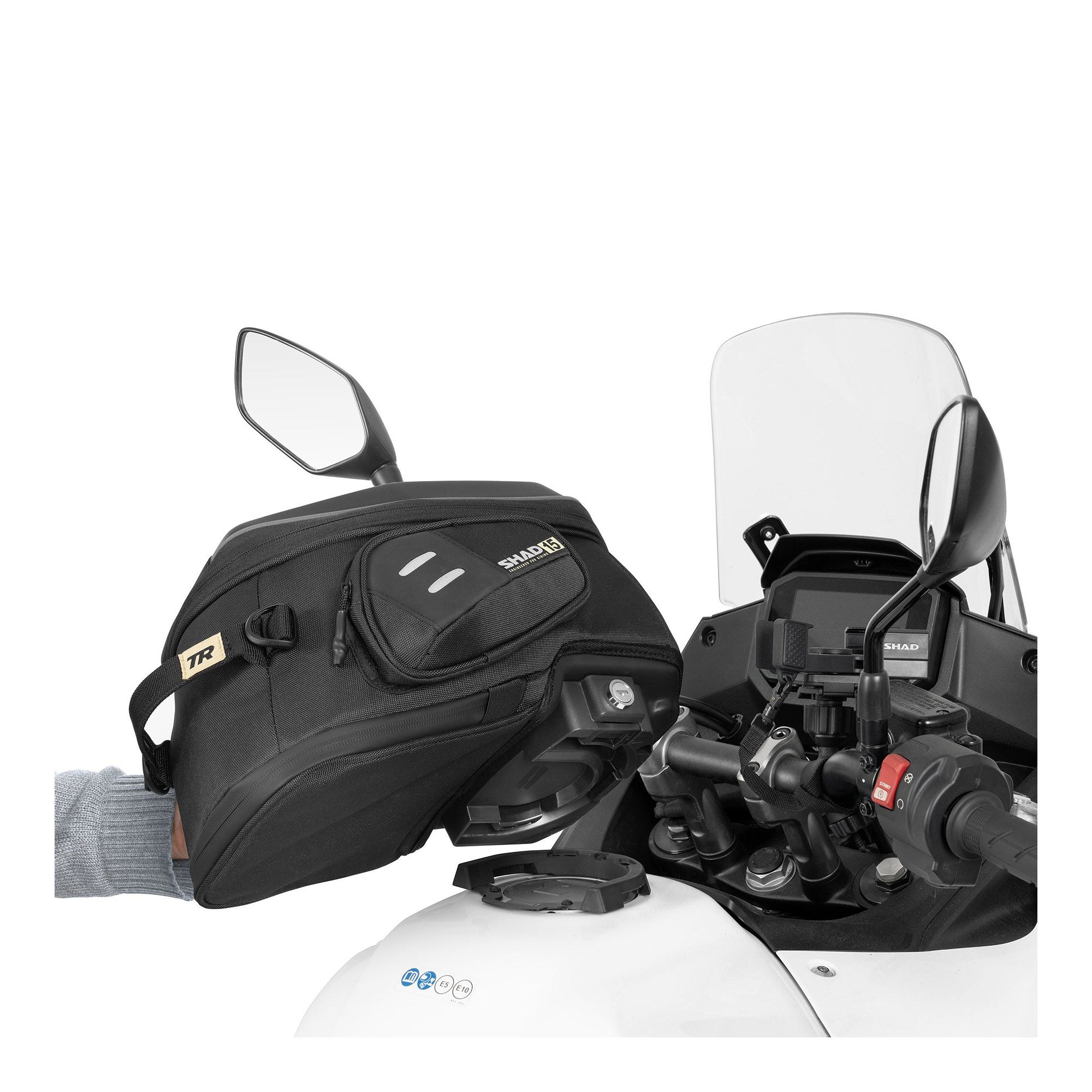 Das SHAD Click System H010CS ist die Weiterentwicklung des Pin System zur Tankrucksack-Befestigung. Es zeichnet sich durch seine Benutzerfreundlichkeit und die Integration an das Motorrad aus, sowie durch den Druckknopf, mit dem man den Tankrucksack durch einfaches Drücken schnell entriegeln kann.
