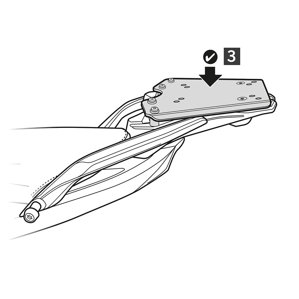 Mit der SHAD Top Master Halterung kann ein Koffer oben auf dem Fahrzeug befestigt werden. Die Vorrichtungen sind speziell für jedes Modell entsprechend seiner Eigenschaften gefertigt. Sie sind hochwertig, sicher sowie leicht zu montieren. Um den Koffer anzubringen braucht man die Trägerplatte, die im SHAD-Koffer enthalten ist.